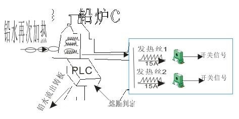 整个铅液的加热过程,由PLC系统进行逻辑判定,再加上温度控制。由于铅液加热的过程中是通过加热器来进行加热,而加热器在在恒定的功率下,所产生的热量相同就会使铅液的加热恒定。因此只要检测加热器的流过的电流大小可以判定加热器的热量值,最后通过PLC控制铅液的流通,因为在一个加热炉里面有好几个加热器,每个加热器都需要进行逻辑判定:如下图: