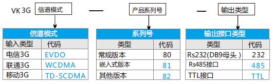 例如:VK3G-EVDO -80-232-DTU系可简写为:VK3G-EVDO